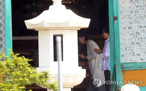 이날 오전 10시께 해운정사를 찾은 홍 전 관장은 조계종 종정 진제 스님을 만나고 나서 의식을 지냈다.