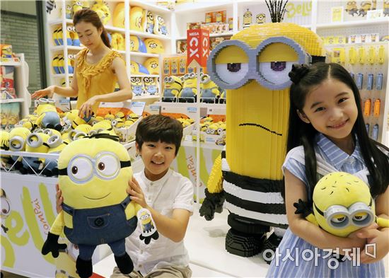 [아시아경제 김현정 기자] 신세계가 20일 강남점에서 국내 최초로 글로벌 인기 캐릭터 미니언즈 팝업스토어를 열었다. 신세계백화점은 오는 26일 영화 ‘슈퍼배드3’의 개봉을 앞두고 팝업 매장에서 미니블록 3만개, 제작기간만 한 달이 넘게 걸려 완성된 1.2미터짜리 미니언즈 모형을 선보였다. 이밖에 미니언즈 캐릭터 인형, 키덜트 상품, 피규어, RC카, 핸드폰 케이즈, 문구류, 생활용품 등 다양한 캐릭터 상품들을 판매한다.