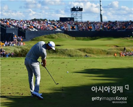 세계랭킹 1위 더스틴 존슨(미국)이 21일 새벽(한국시간) 잉글랜드 사우스포트 로열버크데일골프장(파70ㆍ7156야드)에서 열린 2017시즌 세번째 메이저 146번째 디오픈(총상금 1025만 달러) 1라운드 14번홀(파3ㆍ200야드)에서 티 샷을 하고 있다. 200야드의 전장부터 만만치 않은 홀이다. 존슨 역시 이븐파로 순항하다가 이 홀에서 그린을 놓쳐 보기를 범했고, 공동 58위로 순위가 뚝 떨어졌다.