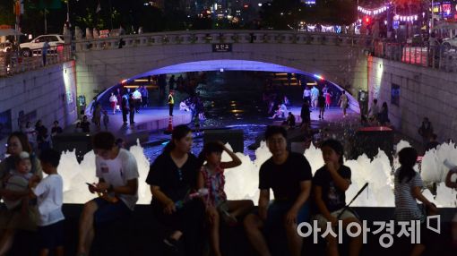 [아시아경제 문호남 기자] 전국 곳곳에 열대야 현상이 나타난 1일 서울 종로구 청계천에서 시민들이 더위를 식히고 있다.