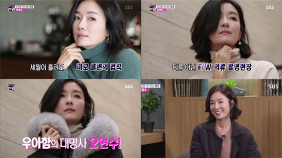 [아시아경제 스타일뉴스 정현혜 기자] 배우 오연수가 계절을 앞선 럭셔리룩을 선보였다. 지난 1일 SBS 연예정보 프로그램 ‘본격연예 한밤’은 배우 오연수 가을/겨울 시즌 패션 광고 촬영 현장과 인터뷰 장면을 공개했다.