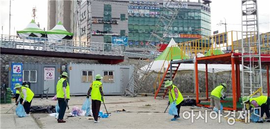 "노인일자리사업 ‘정남진장흥가꾸기 사업단’물축제장 정화활동 실시"