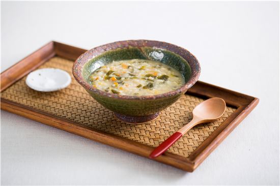 4. 밥알이 푹 퍼지고 재료가 익으면 된장을 풀어 넣고 소금으로 간한다.