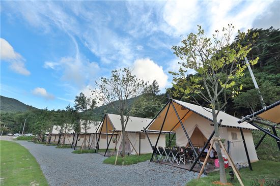 전국 최대 규모의 편백나무 조림지인 병풍산 자락에 위치한 캠핑장이다. 텐트 안에 침대, 에어컨, 텔레비전, 냉장고, 화장실 등이 갖춰져 있기에 일상의 편리함을 누리면서도 편백숲의 바람소리, 물소리, 풀벌레 소리를 한결 가깝게 느낄 수 있다.