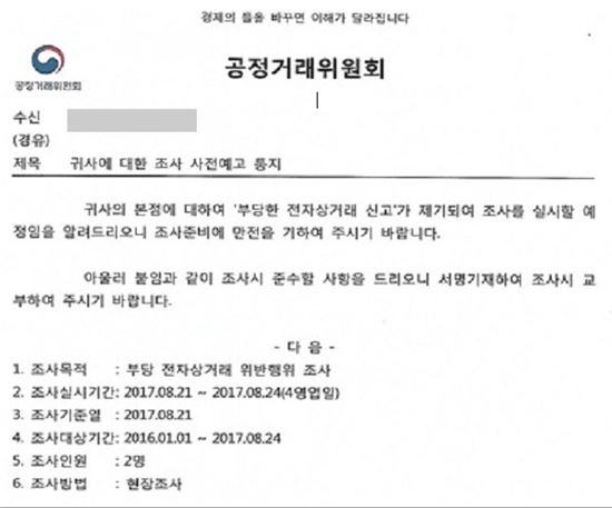 하지만 공정위는 조사관련 공문서를 사전에 이메일로 발송하지 않고, 조사공무원이 현장에서 서면으로 전달한다. 공정위는 "유사한 메일을 수신하면 해당 메일 발송 여부를 열람 전에 유선으로 확인해야 한다"고 조언했다.