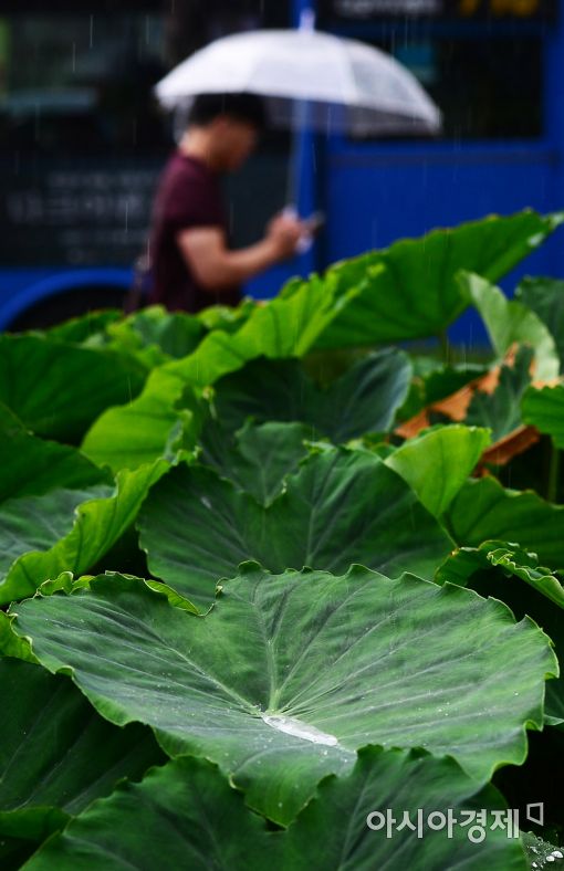 [아시아경제 문호남 기자] 가을의 두 번째 절기, 처서(處暑)이자 전국에 비가 내린 23일 서울 종로구 광화문 네거리에서 한 시민이 우산을 쓴 채 발걸음을 옮기고 있다.