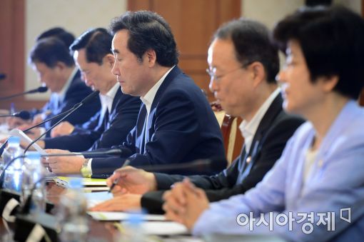 [아시아경제 문호남 기자] 이낙연 국무총리를 비롯한 국무위원들이 24일 서울 세종로 정부서울청사에서 열린 국정현안점검조정회의에서 심각한 표정을 짓고 있다.