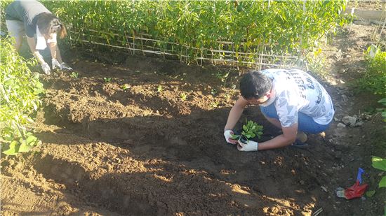 더운 날씨에도 불구하고 삼삼오오 모인 관악구 농민들은 익숙지 않는 손길로 이랑을 만들고 배추 모종을 심으며 구슬땀을 흘렸다.