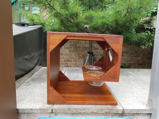 급식소 디자인은 서울대 수의학과 김민기와 안산대 건축디자인학과 윤효진이 만든 프로젝트 팀(NOT FOR SALE)에서 재능기부로 참여, 가로?세로?높이 각 45cm 크기로 주변 환경과 잘 어울리도록 친환경 나무로 제작했다.