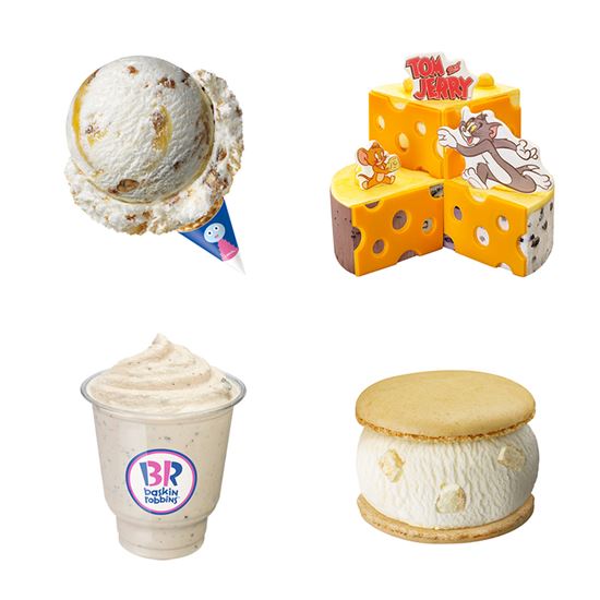 '톰과 제리의 치즈케이크'는 커다란 치즈 케이크 위로 쫓고 쫓기는 톰과 제리의 스토리를 담은 아이스크림 케이크다. 초콜릿 장식물로 톰과제리 캐릭터와 치즈 모양을 표현했다. 뉴욕치즈케이크, 블루베리치즈케이크, 아몬드봉봉, 초콜릿, 체리쥬빌레, 쿠키앤크림 6가지 맛으로 구성됐다. 가격은 2만5000원.