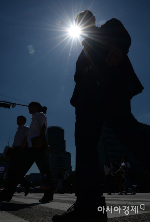 [아시아경제 문호남 기자] 맑고 청명한 초가을 날씨를 보인 1일 서울 종로구 광화문 네거리에서 시민들이 햇볕 아래 발걸음을 재촉하고 있다.