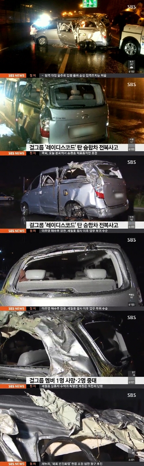 지난 2014년 SBS 뉴스에서 공개한 레이디스코드 교통사고 현장에서 사고차량은 당시의 처참한 모습을 그대로 보여주는 듯 했다.