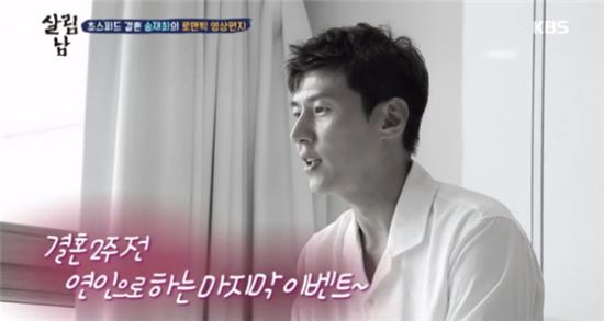 지난달 30일 KBS2 '살림하는 남자들 시즌2'(이하 '살림남2')에서는 송재희가 지소연에게 영상편지를 보냈다. 그는 “오늘 우리 만난 지 100일 째 되는 날이야”라며 “천국보다 더 천국 같은 우리 인생이 되도록…”이라고 전하는 등 달달한 멘트로 눈길을 끌었다.