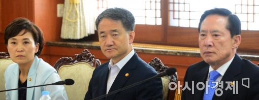 [아시아경제 문호남 기자] 김현미 국토교통부 장관(왼쪽), 박능후 보건복지부 장관, 송영무 국방부 장관이 7일 서울 세종로 정부서울청사에서 열린 국정현안점검조정회의에 참석해 이낙연 국무총리의 모두발언을 듣고 있다.