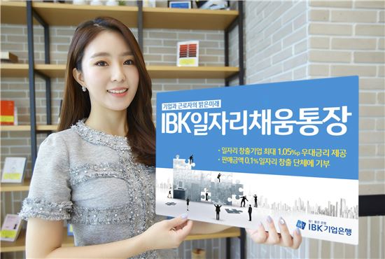[아시아경제 손선희 기자] IBK기업은행은 일자리 창출 기업에 우대금리를 제공하고 판매금액의 0.1%를 일자리 창출 지원 단체에 기부하는 'IBK일자리채움통장'을 출시했다고 8일 밝혔다.