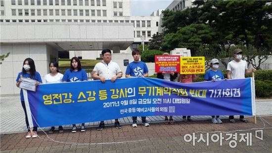 8일 전국중등예비교사들의외침(중교외)은 서울 서초구 대법원 정문 앞에서 기자회견을 열고 "교육 예산이 한정된 만큼 이들을 무기계약직으로 전환하면 수업을 담당할 정교사의 일자리가 줄어들 것"이라며 "이는 전국 5만여 임용시험 준비생들에 대한 역차별"이라고 밝혔다.