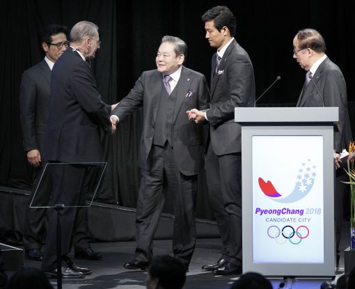 [이미지출처=연합뉴스]이건희 삼성 회장 IOC 위원 사퇴 (서울=연합뉴스) 장현구 기자 = 투병 중인 이건희 삼성 회장이 결국 국제올림픽위원회(IOC) 위원직을 사퇴했다. IOC 집행위원회는 11일 이 회장의 가족에게서 더는 이 회장을 IOC 위원으로 간주하지 말아 달라는 요청을 받았다며 이 회장의 IOC 위원직 사퇴를 공식으로 발표했다.사진은 2011년 7월 6일 남아공 더반 국제컨벤션센터에서 열린 국제올림픽위원회(IOC) 총회에 참석한 이건희 삼성회장이 평창 유치위 프리젠테이션이 끝난 뒤 자크로게 IOC위원장과 악수하는 모습. 2017.8.11 [연합뉴스 자료사진] seephoto@yna.co.kr(끝)<저작권자(c) 연합뉴스, 무단 전재-재배포 금지>