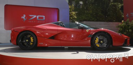 [아시아경제 문호남 기자] 18일 서울 중구 신라호텔 영빈관에서 열린 페라리 브랜드 출범 70주년 행사에서 한정판 슈퍼카 '라페라리 아페르타'가 국내 최초로 공개되고 있다.