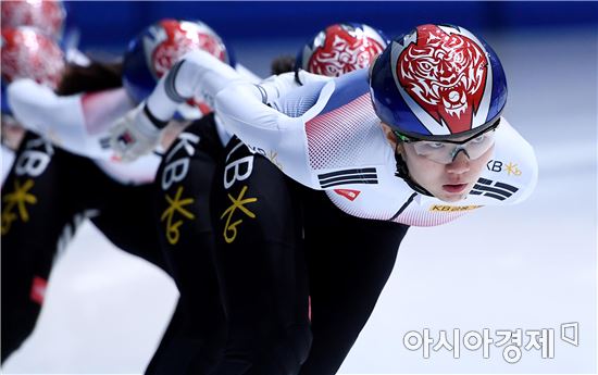 [태릉=아시아경제 김현민 기자]쇼트트랙 국가대표 심석희가 18일 서울 태릉실내스케이장에서 열린 미디어데이에서 2018 평창동계올림픽을 대비한 훈련을 하고 있다.