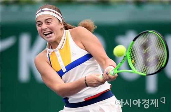 [아시아경제 김현민 기자]엘레나 오스타펜고(라트비아)가 19일 서울 송파구 올림픽공원 테니스장에서 열린 KEB하나은행 인천공항 코리아오픈 1회전에서 요한나 라르손(스웨덴)과 대결하고 있다.