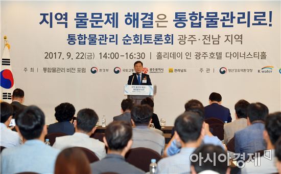 [아시아경제 노해섭 기자]윤장현 광주광역시장이 22일 오후 서구 홀리데이인 광주호텔 다이너스티 홀에서 환경부 주관으로 열린 '광주·전남 통합물관리 순회토론회'에 참석해 인사말을 하고 있다.