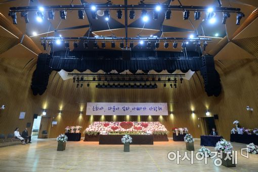 [아시아경제 문호남 기자] 24일 서울 중구 서울시청 본관 다목적홀에서 세월호 희생자 조은화·허다윤 양의 이별식이 열리고 있다.