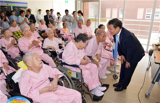 [아시아경제 노해섭 기자]윤장현 광주광역시장이 추석 명절을 앞두고 25일 오전 남구 덕남동 광주시립제2요양병원를 방문해 어르신들을 위로하고 있다.