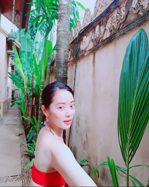 해당 사진에서 윤아정은 빨간 비키니를 입고 카메라를 응시하고 있다. 잔머리 하나 내리지 않고 묶은 머리에도 완벽한 미모를 자랑하는 윤아정의 모습이 눈에 띈다. 특히 잡티 하나 없는 피부가 눈길을 끌고 있다.
