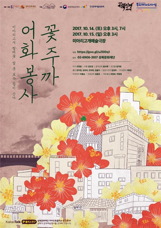 연극 '어화 봉사 꽃 주까'는 사전예약을 통해 무료로 관람 할 수 있다. 공연정보와 예매 문의는 성북문화재단 홈페이지와 전화(6906-3107)를 이용하면 된다.