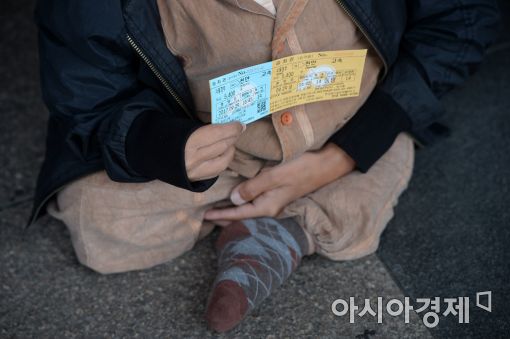 [아시아경제 문호남 기자] 전국장애인차별철폐연대 관계자들이 29일 서울 서초구 서울고속버스터미널에서 '장애인 이동권 보장을 위한 추석연휴 천막농성 돌입 기자회견'을 마친 뒤 김현미 국토교통부 장관과 면담을 촉구하고 있다.