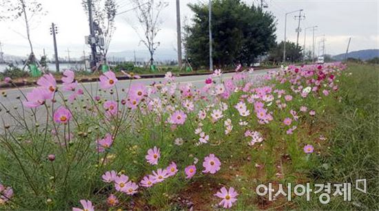 [아시아경제 노해섭 기자]남도의 젖줄 영산강을 따라 이어지는 극락교~승촌보 갓길에 형형색색의 코스모스가 개화해 시민들에게 가을 정취를 선사하고 있다.