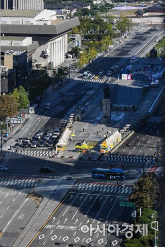 추석연휴 임시 공휴일인 2일 오전 서울 종로구 광화문 네거리 일대가 한산한 모습을 보이고 있다.