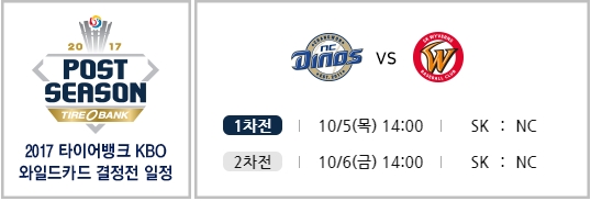 이번 와일드카드 진출팀은 NC 다이노스와 SK와이번스로, 오늘(5일) 오후 2시부터 경기가 시작된다.