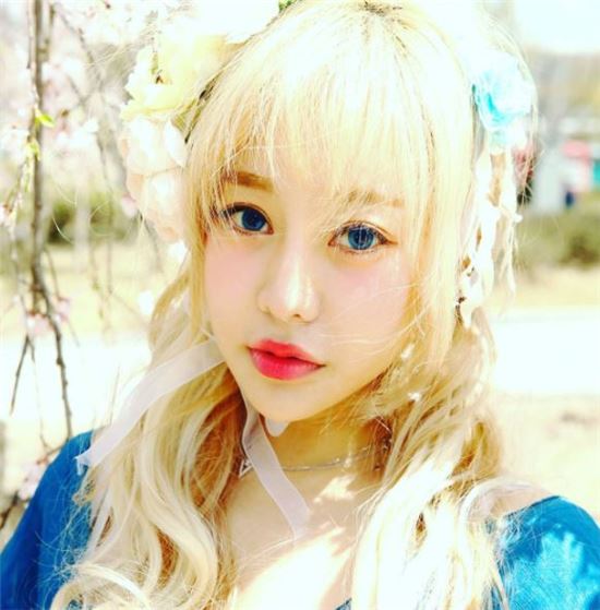 게재된 사진 속 정하나는 웨이브가 들어간 금발 머리에 푸른색 렌즈를 착용해 이국적인 미모를 빛냈다. 그는 새하얀 피부에 붉은 홍조 메이크업으로 생기있고 귀여운 매력을 발산했다. 그는 일명 ‘만찢녀’ 미모로 눈길을 사로잡았다.