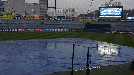 [마산= 아시아경제 박병희 기자] 12일 창원 마산야구장에서 열릴 예정이었던 프로야구 롯데 자이언츠와 NC 다이노스의 준플레이오프 4차전이 우천으로 취소됐다.