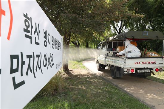 성동구보건소 질병예방과는 중랑천변 2개 지점 반경 10km이내인 ‘야생조수류 예찰지역’에 대해 14일 오전 9시와 오후 2시 긴급 집중 소독을 했다.