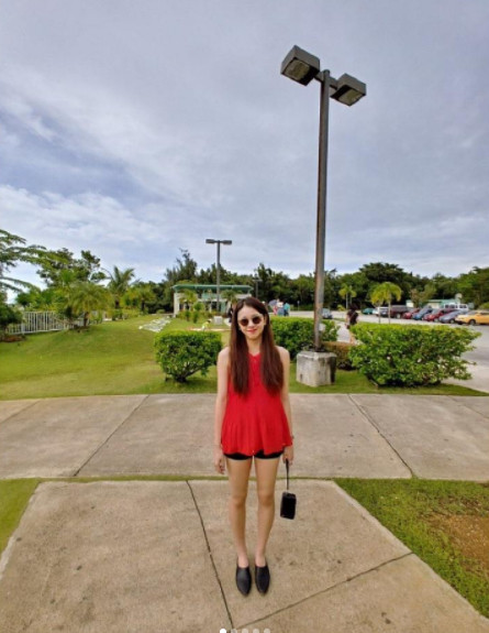 해당 사진에서 채영은 연휴를 맞아 가족과 함께 괌으로 여행 간 모습이다. 그는 작은 얼굴을 자랑하며 빨간 민소매와 검은 핫팬츠를 매치해 패션 감각을 뽐내고 있다.