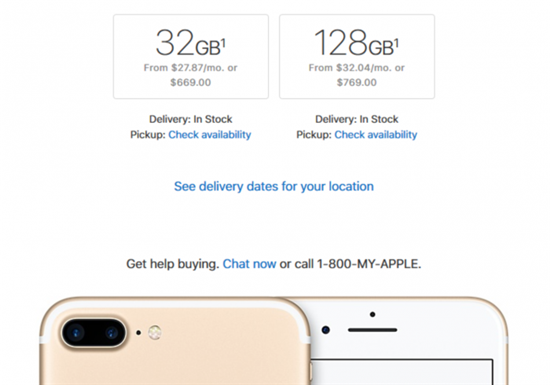 22일(현지시간) IT매체 폰아레나에 따르면 애플은 공식 홈페이지를 통해 아이폰7 256GB 판매를 중단했다. 현재 애플은 아이폰7 32GB와 128GB 모델만 판매하고 있다.