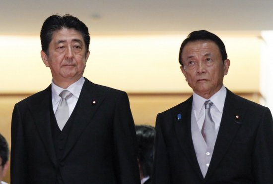 日 아소 부총리 "북한덕분에 대승" 발언 해명 아베 신조 일본 총리(사진 왼쪽)와 아소 다로 부총리 겸 재무상 [이미지출처=EPA연합뉴스]