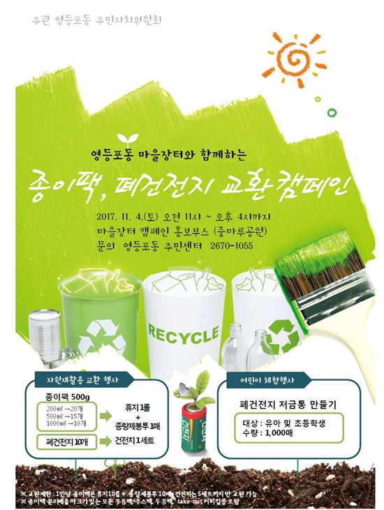 영등포동, 11월 4일 중마루공원서 종이팩 ·폐건전지 교환캠페인 추진