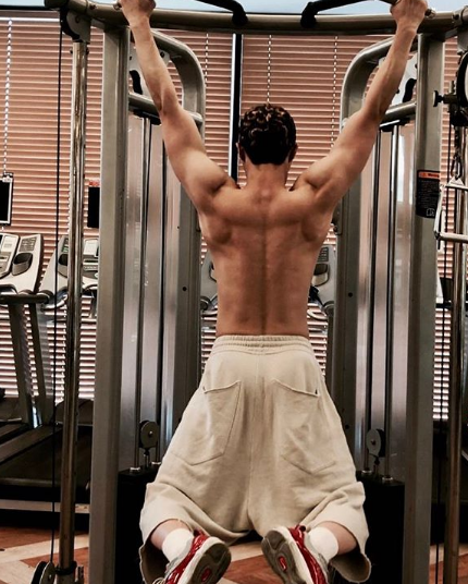 사진 속 박서준은 상의를 벗고 운동 기구에 올라 근육질 몸매를 뽐내고 있다. 평소 부드럽고 온화한 이미지와는 달리 단단한 근육질 몸매가 보는 이들의 시선을 사로잡는다.