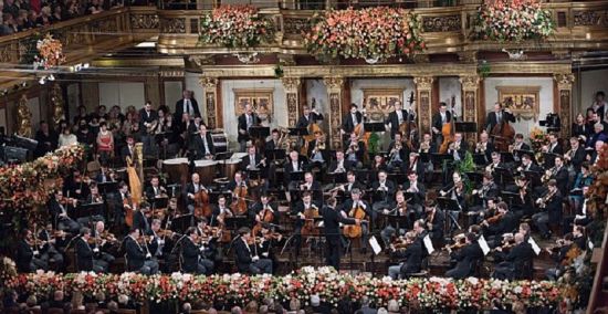 빈 필하모닉 오케스트라의 지난해 신년음악회 모습. 라데츠키 행진곡은 단골 앵콜곡으로 유명하며, 연주도중 관객들이 박자에 맞춰 박수를 치는 관례도 유명하다.(사진=EPA연합뉴스)