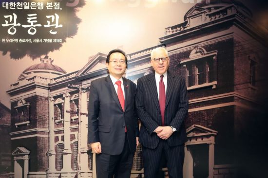 [아시아경제 박소연 기자]우리은행은 지난 17일 서울시 중구 본점에서 손태승 은행장이 세계 최대 사모펀드인 운용사 중 하나인 칼라일그룹의 공동창업주인 데이비드 루벤스타인 공동회장을 만나 주요 현안에 대해 논의했다고 19일 밝혔다.