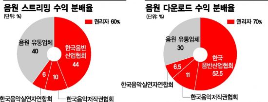 음원 전송 사용료란 스트리밍이나 다운로드 방식으로 음악을 재생할 때 작곡ㆍ작사가, 실연자, 음반제작자 등 권리자가 받는 저작권료를 말한다. 현재 다운로드 방식의 경우 권리자가 70% 수익을, 스트리밍은 60%를 가져간다. 나머지는 멜론이나 벅스 등 유통업체 차지다. 2015년 두 방식의 권리자 몫을 모두 70%로 올리는 방안이 추진됐으나 업계의 반발과 물가 인상 부담 등을 고려해 다운로드 방식만 인상됐었다.