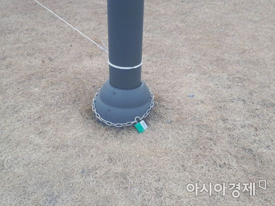 졸업식을 앞둔 서울시내 한 대학캠퍼스에 내 가로등에 쇠사슬과 자물쇠로 자리를 선점한 모습.