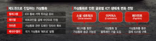 이처럼 가상통화 생태계가 서서히 자리를 잡아가는 것은 국가 등 기존의 제도권이 이를 받아들이는 시발점이 될 것으로 분석된다. 실제로 최근 베네수엘라는 국가가 주도한 첫 가상통화인 '페트로'를 발행했다. 러시아 역시 가상통화 '암호루블'을 개발하는 방안을 구상하고 있는 것으로 전해졌다.