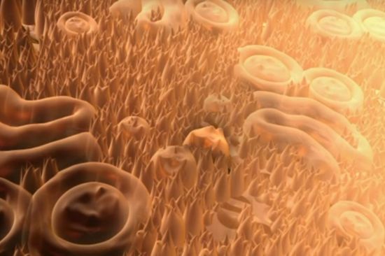 혀 표면의 모습. 수많은 미뢰가 맛을 포착해 뇌에 전달하면 뇌가 정보를 종합해 맛을 느끼게 된다.[사진=유튜브 화면캡처]