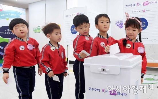 3일 서울 종로구 서울시선거관리위원회에서 열린 '어린이 전용 선거체험관' 개관식에서 어린이들이 투표 체험을 하고 있다./김현민 기자 kimhyun81@