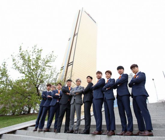 16일 한화생명은 리그오브레전드(League of Legends, LoL) 프로게임단인 락스 타이거즈(ROX Tigers)를 인수해 '한화생명e스포츠(HLE·Hanwha Life Esports)'라는 이름으로 새롭게 창단한다고 밝혔다. 정해승 e스포츠단장(한화생명 브랜드전략팀장)(왼쪽에서 다섯 번째), 강현종 감독(왼쪽에서 네 번째), 김진현 코치(왼쪽에서 여섯 번째)와 선수단이 기념촬영을 하고 있다.(사진=한화생명)