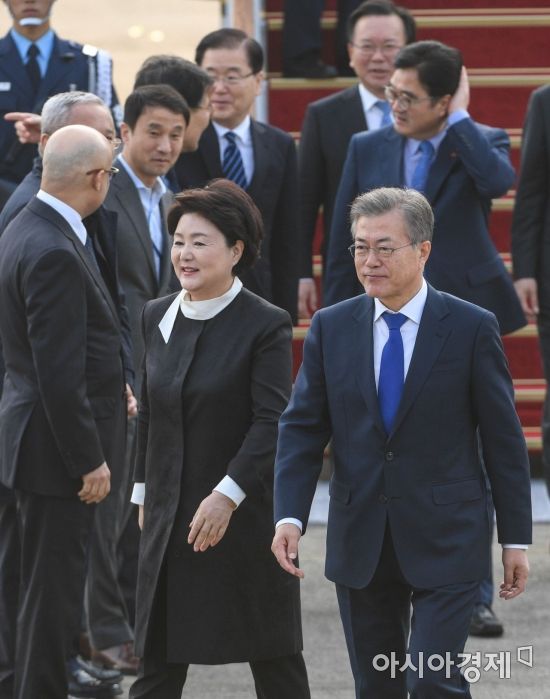한편 김 위원장을 수행한 여동생 김여정 노동당 제1부부장은 회색 정장 차림이었다. 김정일 국방위원장은 김대중 전 대통령과의 1차 남북정상회담 당시 회색 인민복과 갈색 점퍼를 입었고, 노무현 전 대통령과의 2차 남북정상회담 때는 짙은 베이지색 야전 점퍼를 입었다.